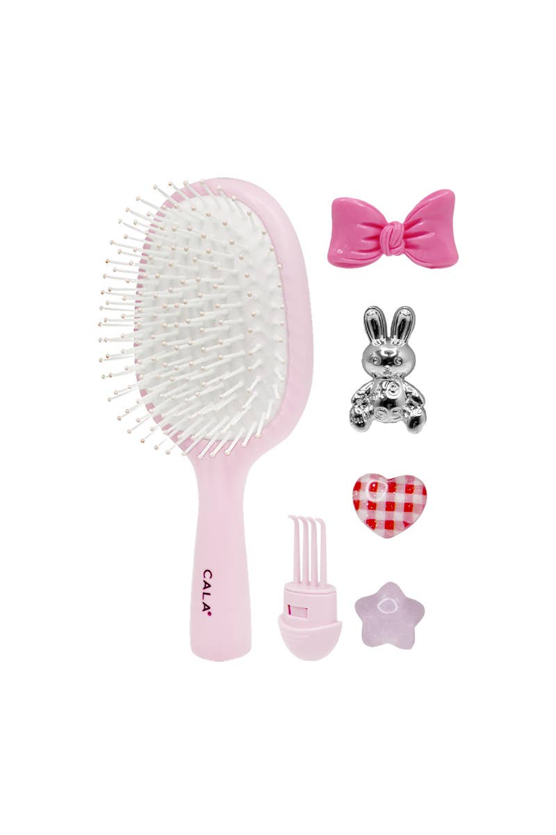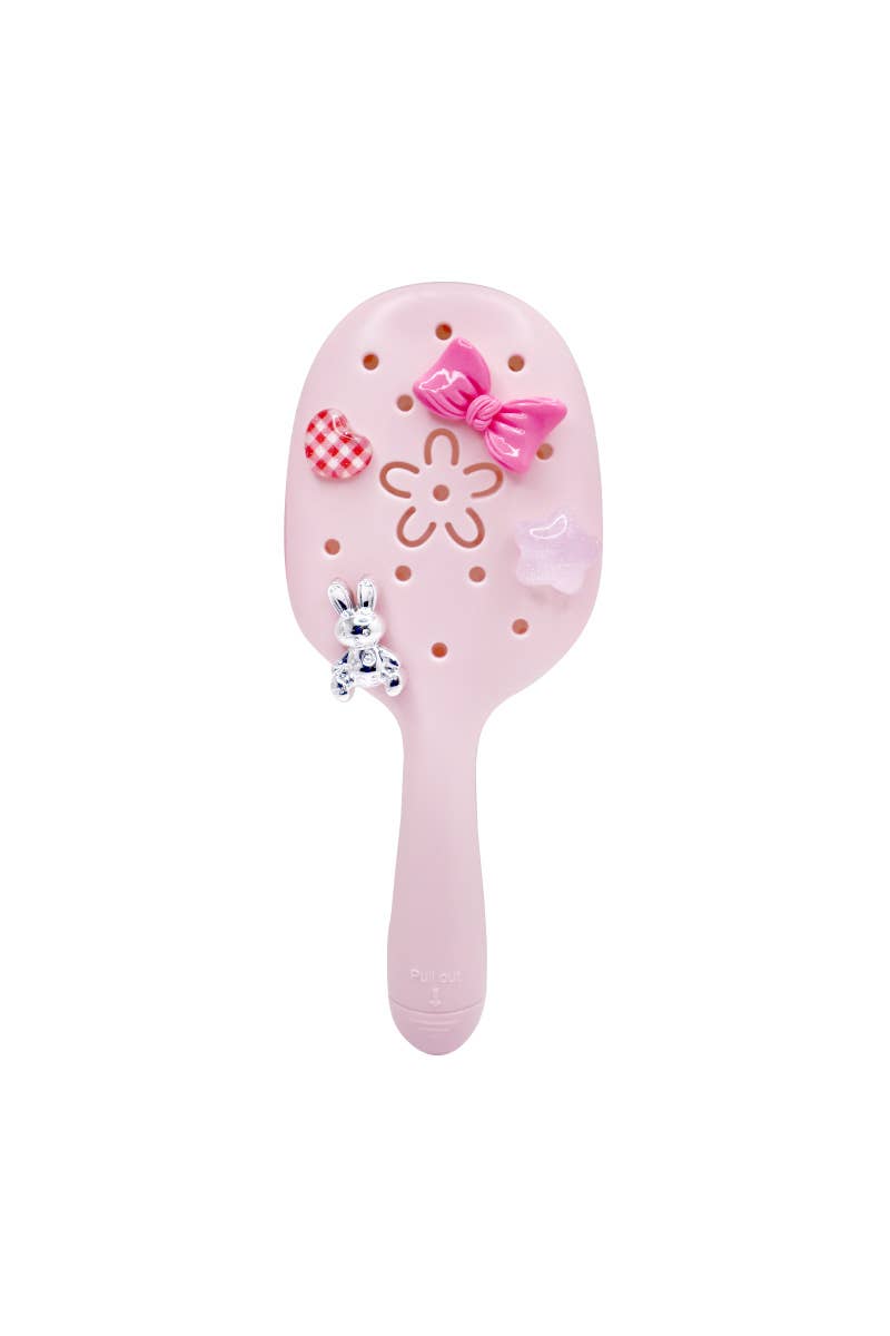 A hidden brush cleaner is included for easy removal of trapped hair, helping to maintain the brush’s cleanliness and longevity. The detachable charms and playful design make this brush both stylish and practical for everyday use.