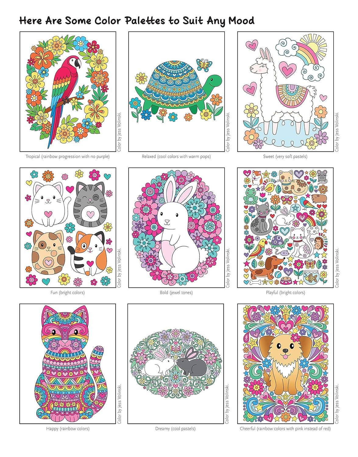 Jess also includes instructions on basic coloring techniques, fully colored examples, and motivational quotes to go with every design. New "Let's Explore Color" activities make coloring easy for beginners, with fully colored examples and help in choosing colors.