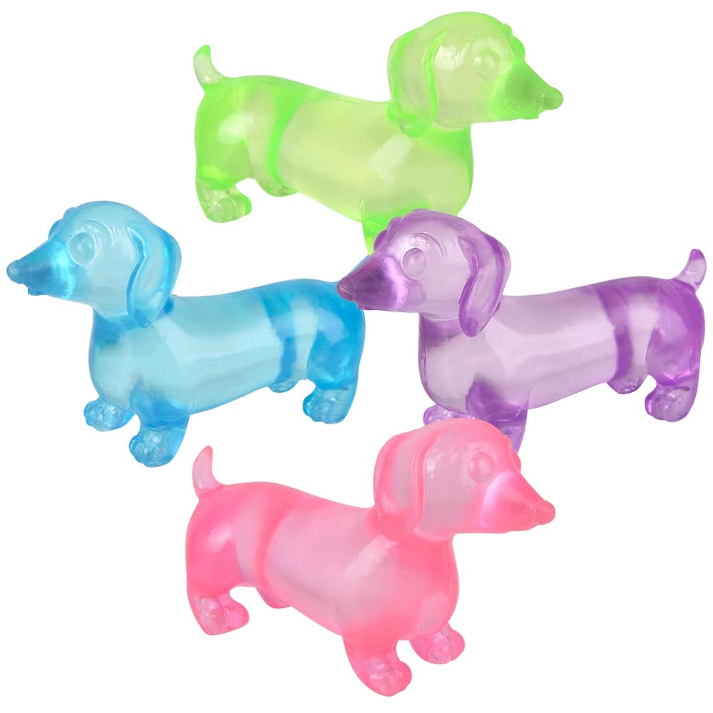 • Sugar squeeze fidget toys in the shape of cute dachshund dogs • Great for fidgety stress relief • Assorted colors •