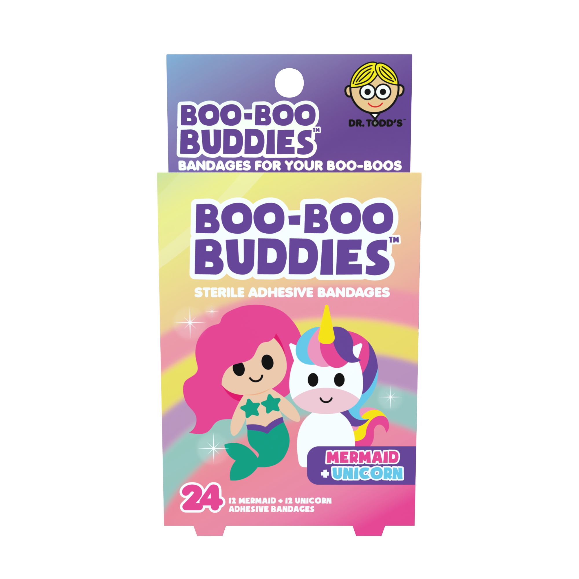 Playful Mermaid and Unicorn character bandages designed to make everyday boo-boos feel less scary. Whimsical, magical designs create strong shelf appeal for gift, kids, and wellness sections. Part of the Boo-Boo Buddies® character bandage series — ideal for assortments and repeat reorders.